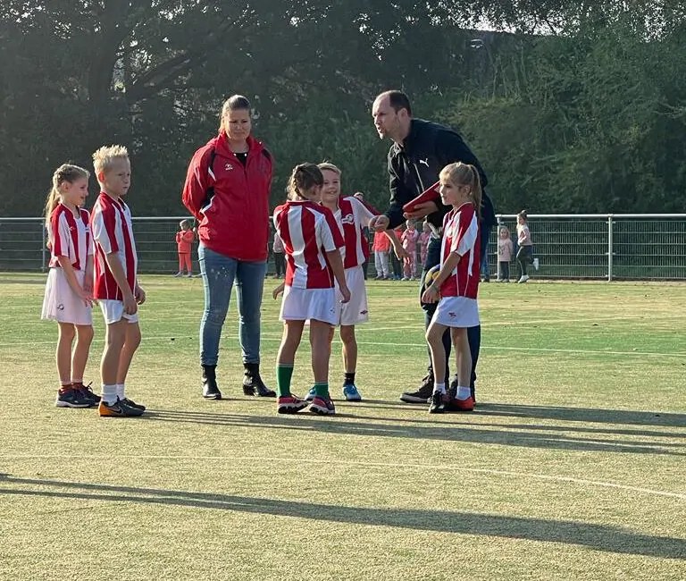 De E2 traint samen met de E1 op de dinsdag en de donderdag en dat is soms wel een uitdaging voor de E2, maar ze worden er zeker beter van door met betere en 1 jaar oudere spelers te trainen. Op de training is de concentratie soms wat minder, maar in de wedstrijd dan gaat dat een stuk beter. Doordat we 1e jaars E zijn (en ook allemaal niet zo lang zijn) en we geregeld tegen 2e jaars E spelen, zijn we vaak kleiner dan de tegenstander, maar we gaan daar steeds beter mee om. Op het veld hebben we nu 5 wedstrijden gespeeld, 2 gewonnen, 1 gelijk en 2 verloren. Komende week de laatste wedstrijd tegen Olympia (hadden we eerst tegen gelijk spelen), nog een minieme kans om kampioen te worden bij winst, maar realistisch gezien kunnen we 2e worden.
